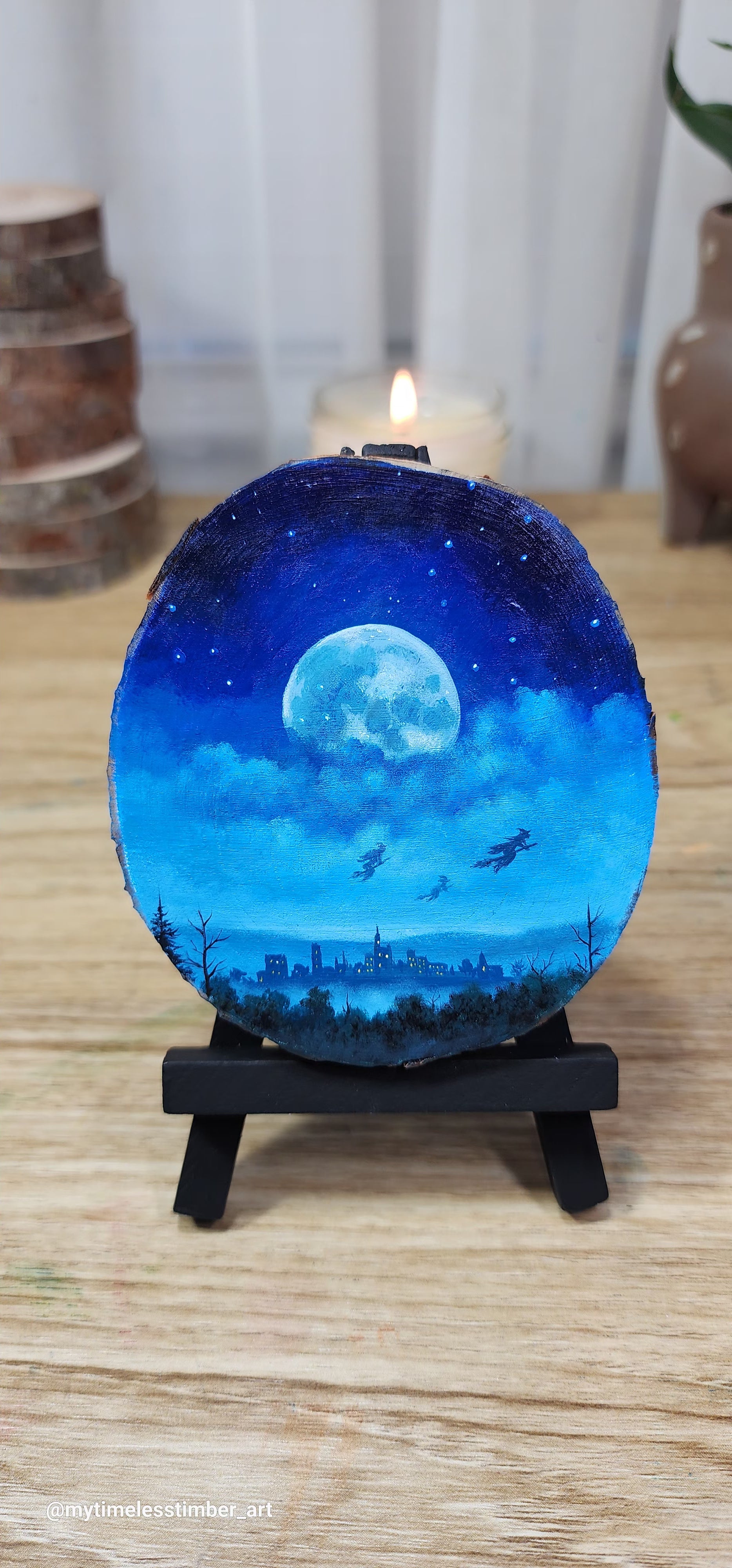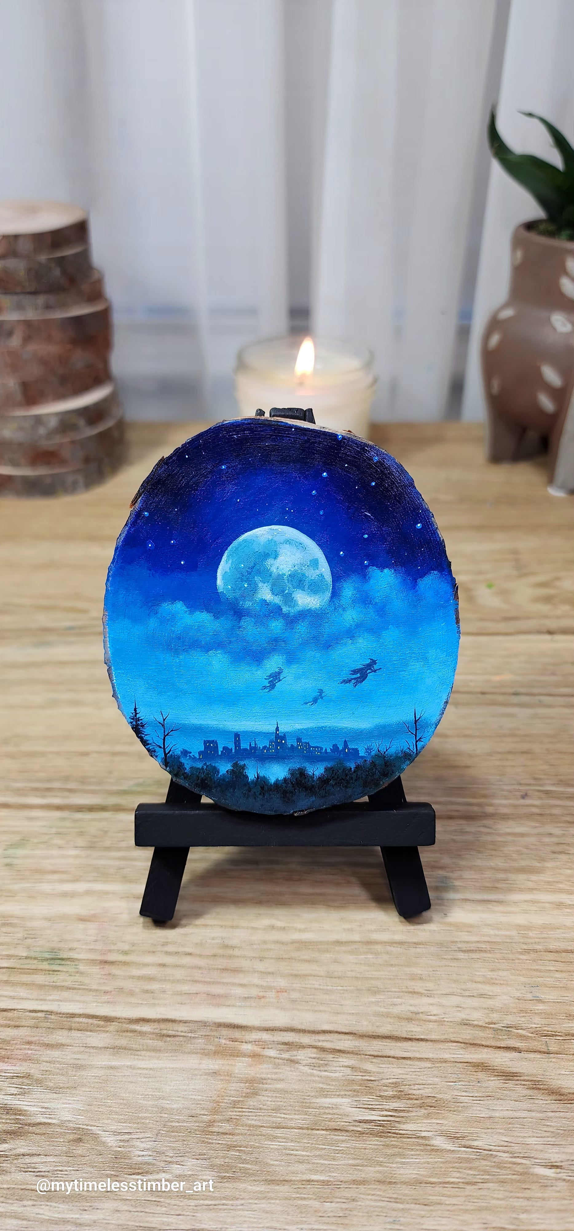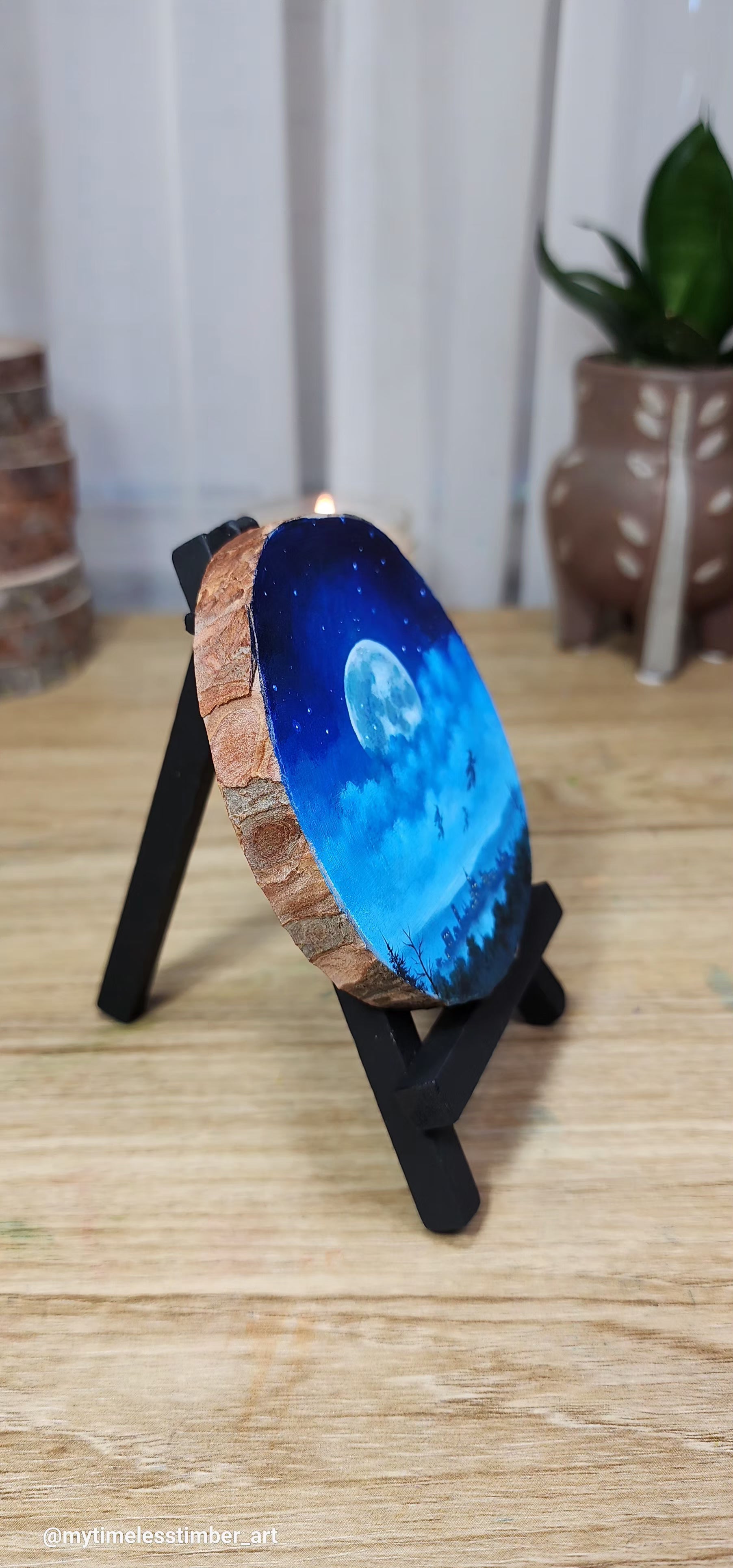 - an original acrylic painting done on a slice of fallen tree branch