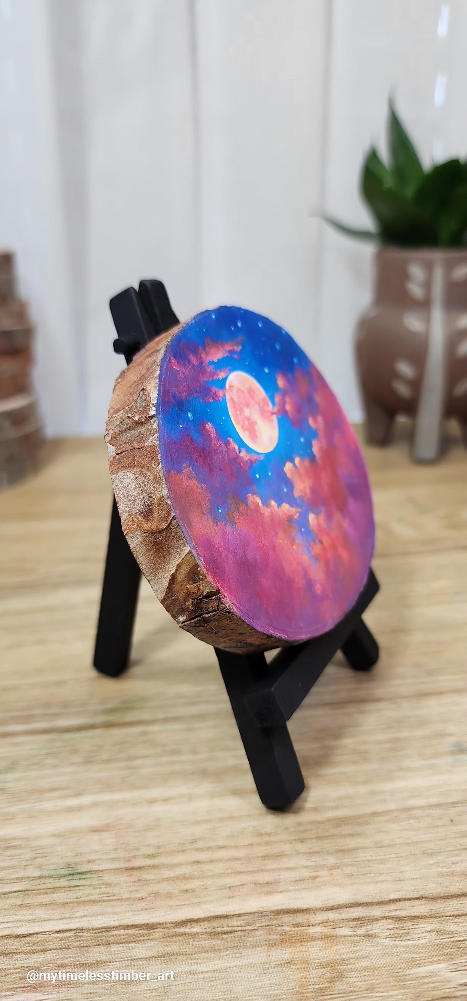 - an original acrylic painting done on a slice of fallen tree branch